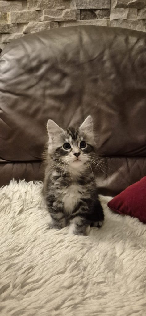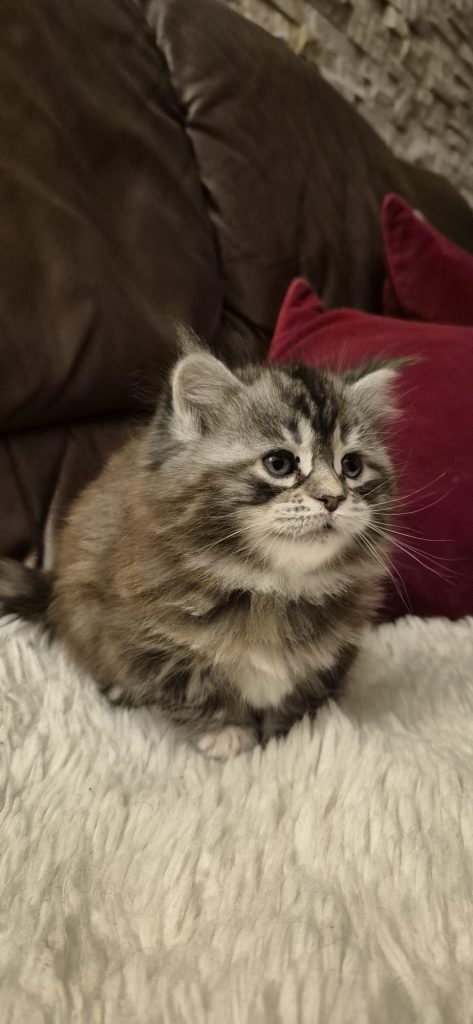 Hei kaikille. Minun nimeni on Vuorensinen Don’t You Ever Leave Me (Hanoi Rocks). Värini on kilpikonnahopea tiikeri. Olen syntynyt 11.1.2024, olen suunnattoman aktiivinen tyttö, ja meno on sen mukaista. isä: CH Yukon of Chiarandy, äiti: Vuorensinen Wild Rose. Indbreeding 9,12% ja kloonit 28,1. Tyttö jää kotiin kasvatukseen.